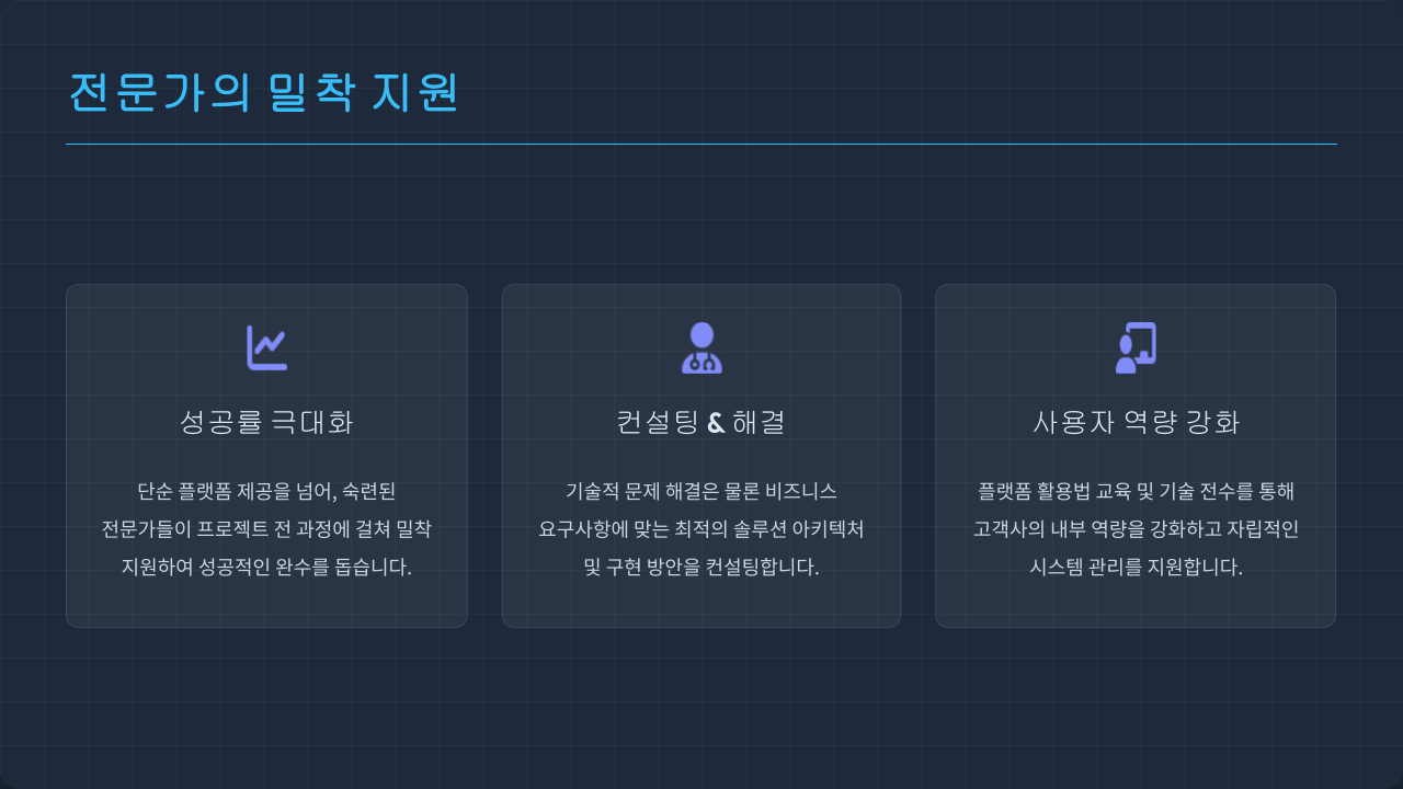 노코드 플랫폼 중에서 가장 전문적이고 안정적입니다. 우리 팀의 생산성이 3배 향상되었습니다.